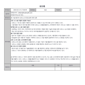 템플릿 기반 회의록 작성으로 중요한 회의 내용을 체계적으로 기록하고 공유